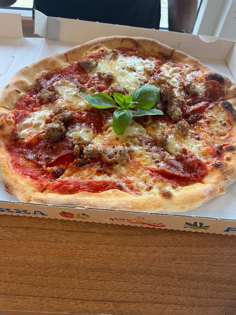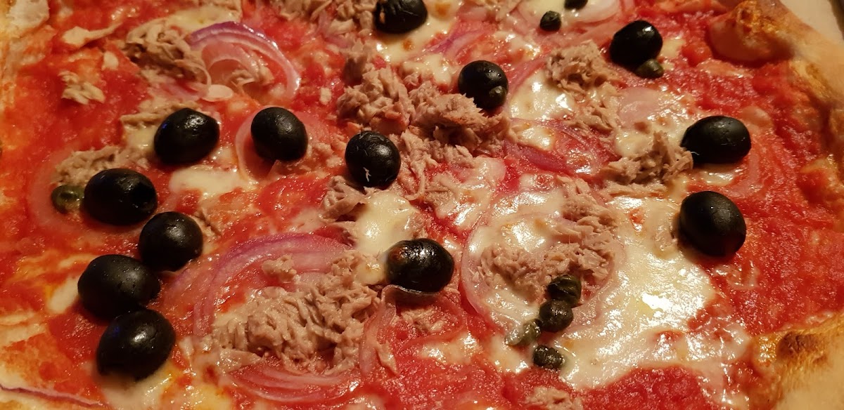 Pyszna pizza od włoskiego szefa kuchni :) Składniki dobrej jakości , ciasto też przyjemne , dobrze wypieczone choć z pieca opalanego drewnem było by idealnie . Fajnie wyważone składniki , bez udziwniania ,taka powinna być włoska pizza . W okolicy na pewno lepszej nie znajdziecie .