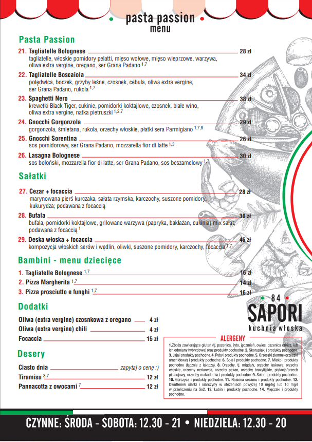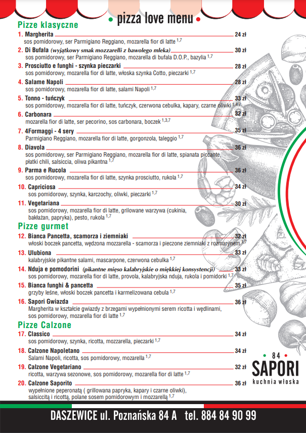 84 Sapori Menu